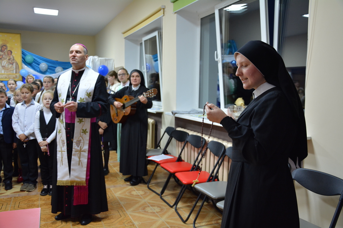 Напачатку малітвы сакратар Апостальскай нунцыятуры ў Беларусі кс. Кшыштаф Сырока прывітаў прысутных ад імя Папы Рымскага Францішка, а таксама перадаў папскі ружанец, што праз некаторы час адправіцца ў малітоўную вандроўку па парафіях Беларусі.