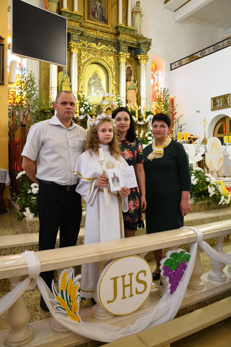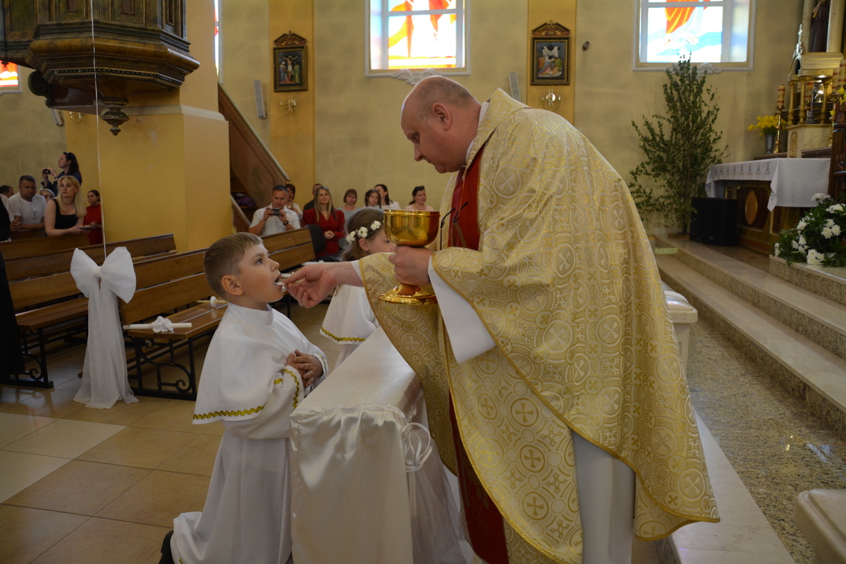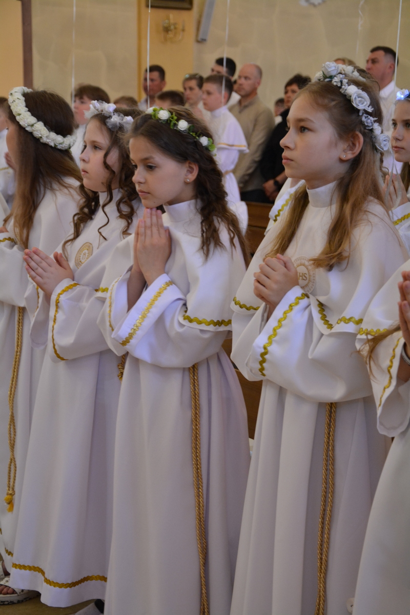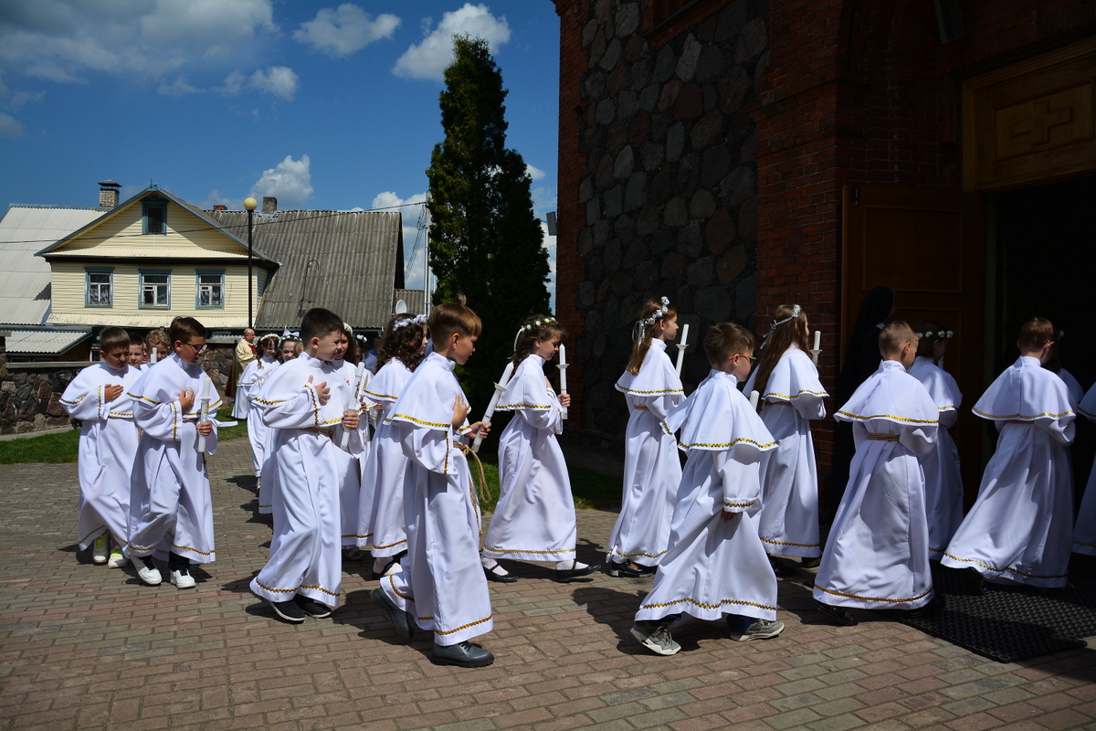 У нядзелю Спаслання Духа Святога 38 дзяцей з нашай парафіі ўпершыню прынялі Езуса ў Эўхарыстыі. Свята для дзяцей, іх бацькоў, родных і хросных атрымалася прыгожым і ўзнёслым.