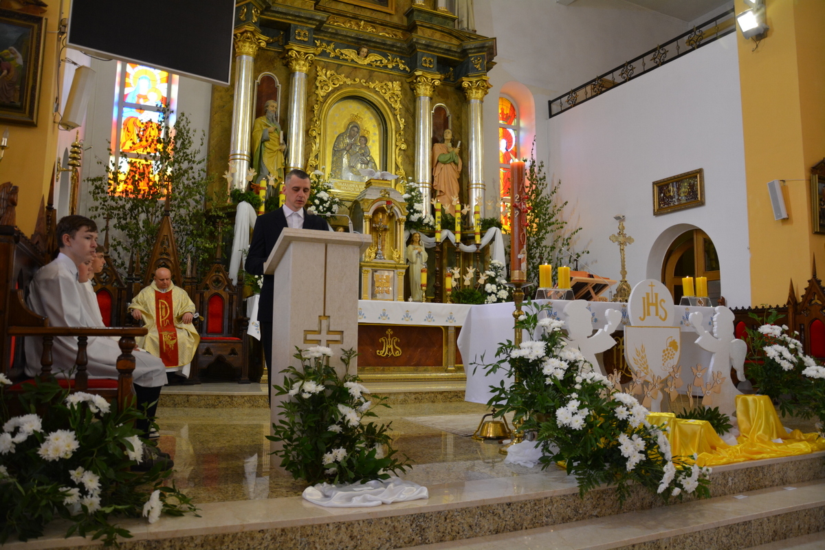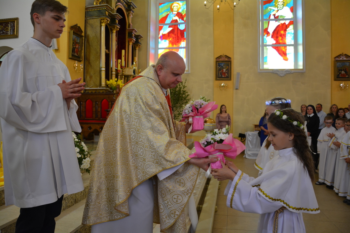 Падчас Імшы пробашч парафіі ксёндз Станіслаў паждаў дзецям надоўга запомніць гэты момант, калі атрымалі ў дар найвялікшы падарунак: магчымасць спажываць Цела Хрыста, якое дае вечнае жыццё. А таксама заахвоціў бацькоў быць добрым прыкладам для дзяцей у частым карыстанні з сакрамэнтаў.