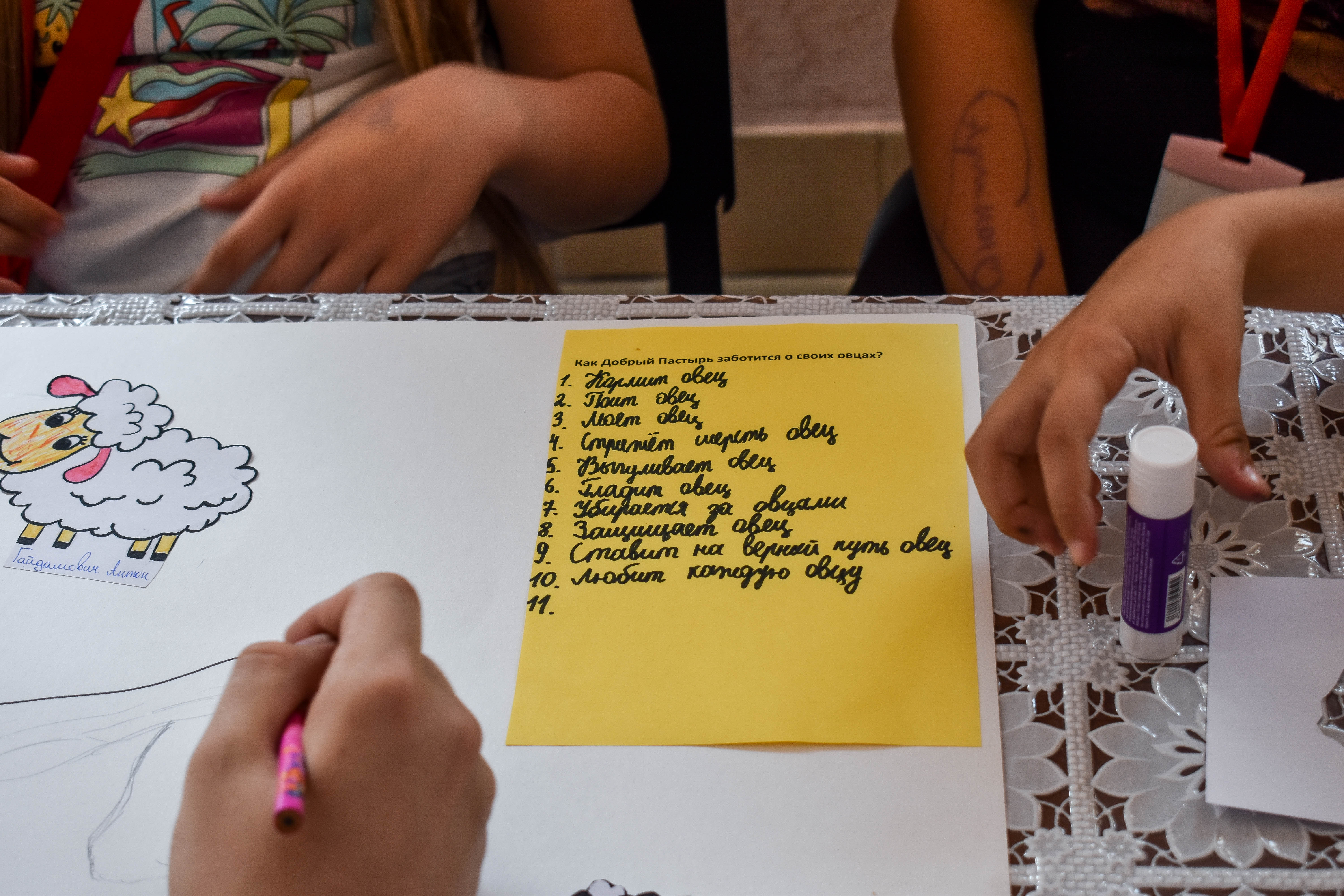 Тэмай “Канікулаў з Богам” было разважнанне над тым, кім жа ёсць Езус для нас паводле Слова Божага. Штодня разам з сёстрамі-эўхарысткамі дзеці адкрывалі новыя азначэнні: “Я ёсць Святло Свету”, “Я ёсць Брама”, “Я ёсць Хлеб Жыцця”, “Я – Добры Пастыр”. Гэтыя словы ляжаць у аснове нашай веры ў Езуса Хрыста, у аснове нашага з ім знаёмства, а таму ўдзел у штодзённых катэхэзах, якія ладзілі сёстры-эўхарысткі, быў каштоўным не толькі для самых маленкіх, але і для дарослых валанцёраў і аніматараў. Тыя ж тэмы падымаліся і пробашчам парафіі ксёндзом Станіславам SDS падчас штодзённай Святой Імшы.