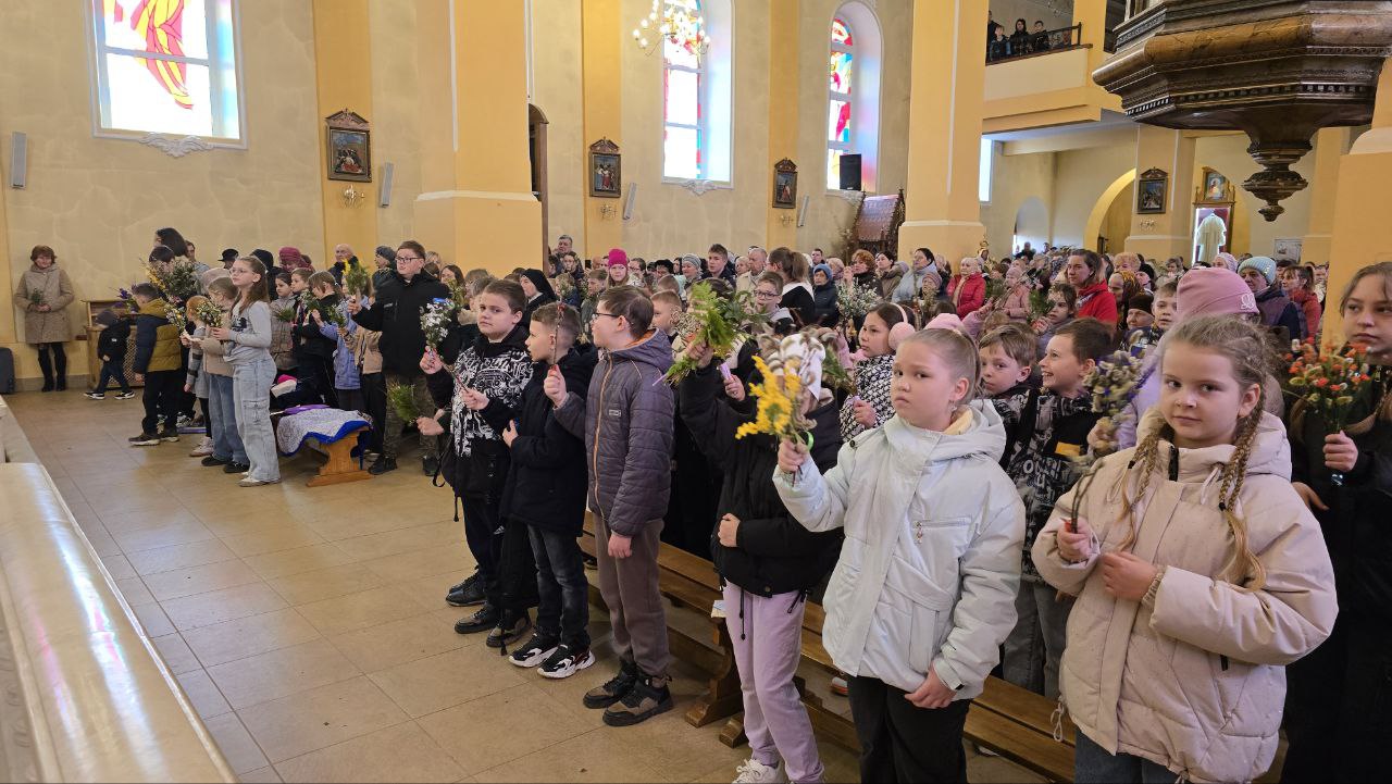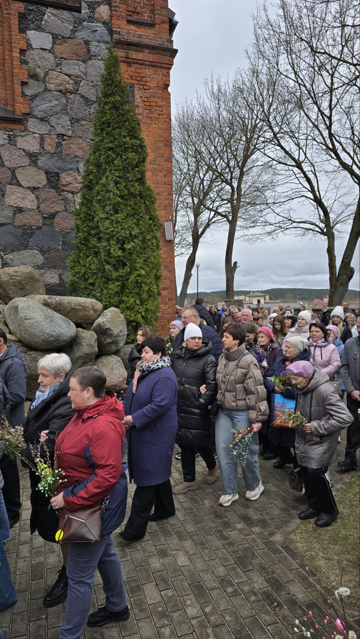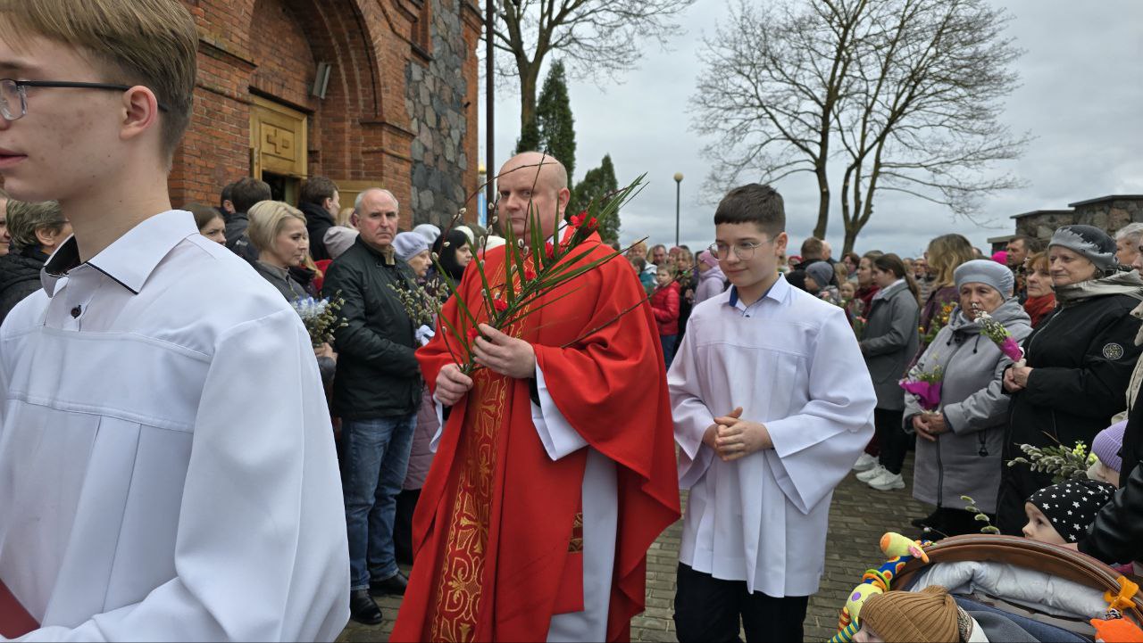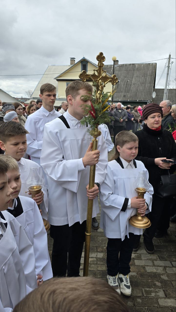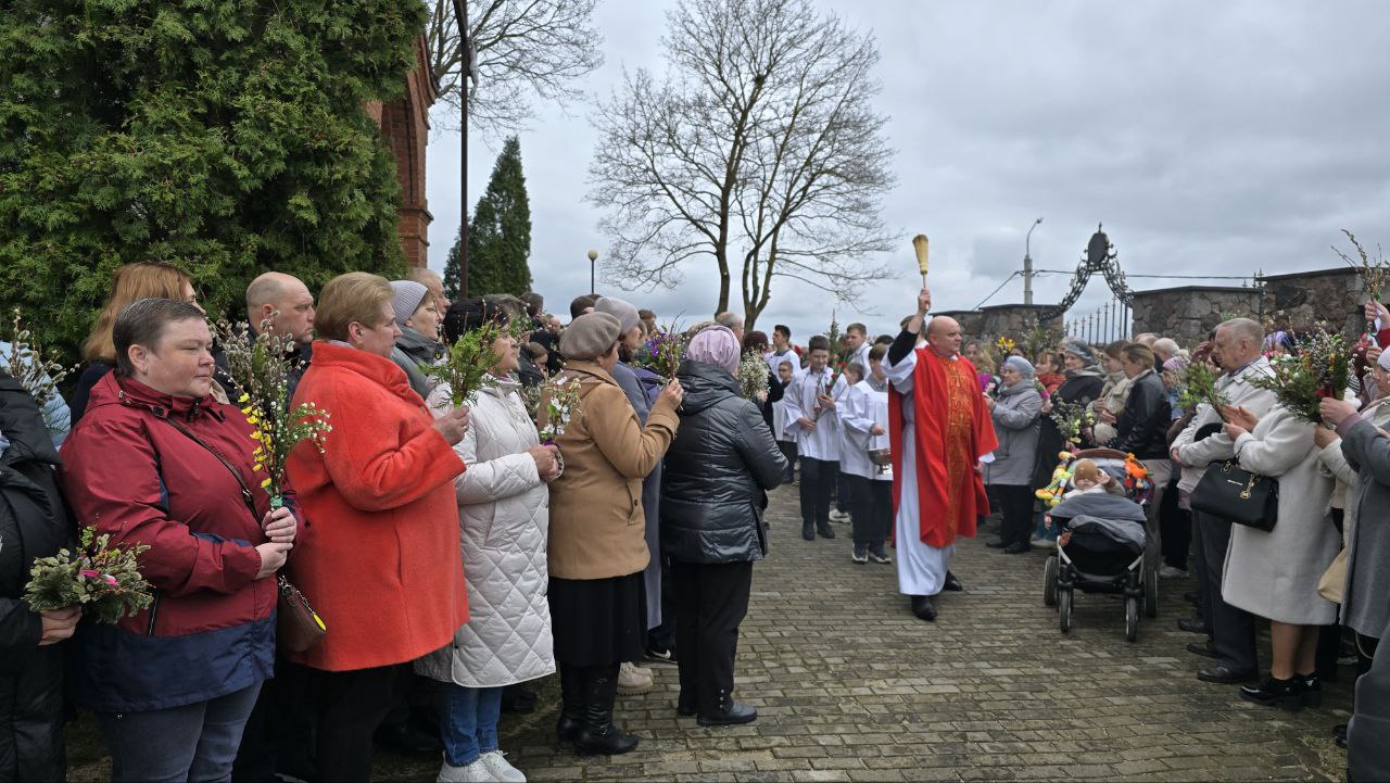 Па добрай традыцыі працэсія з вербамі распачала святую Імшу на 11 гадзін. Падчас святой Імшы пробашч парафіі кс. Станіслаў Мжыглуд заахвочваў прысутных знайсці час на гэтым тыдні, каб прысвяціць яго цішыні і малітве, аддаючы падзяку і хвалу Богу за збаўчую муку Яго Сына.
