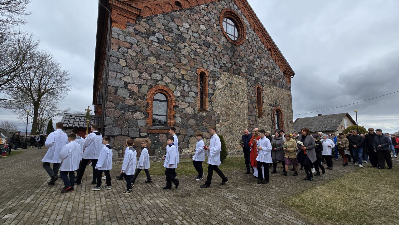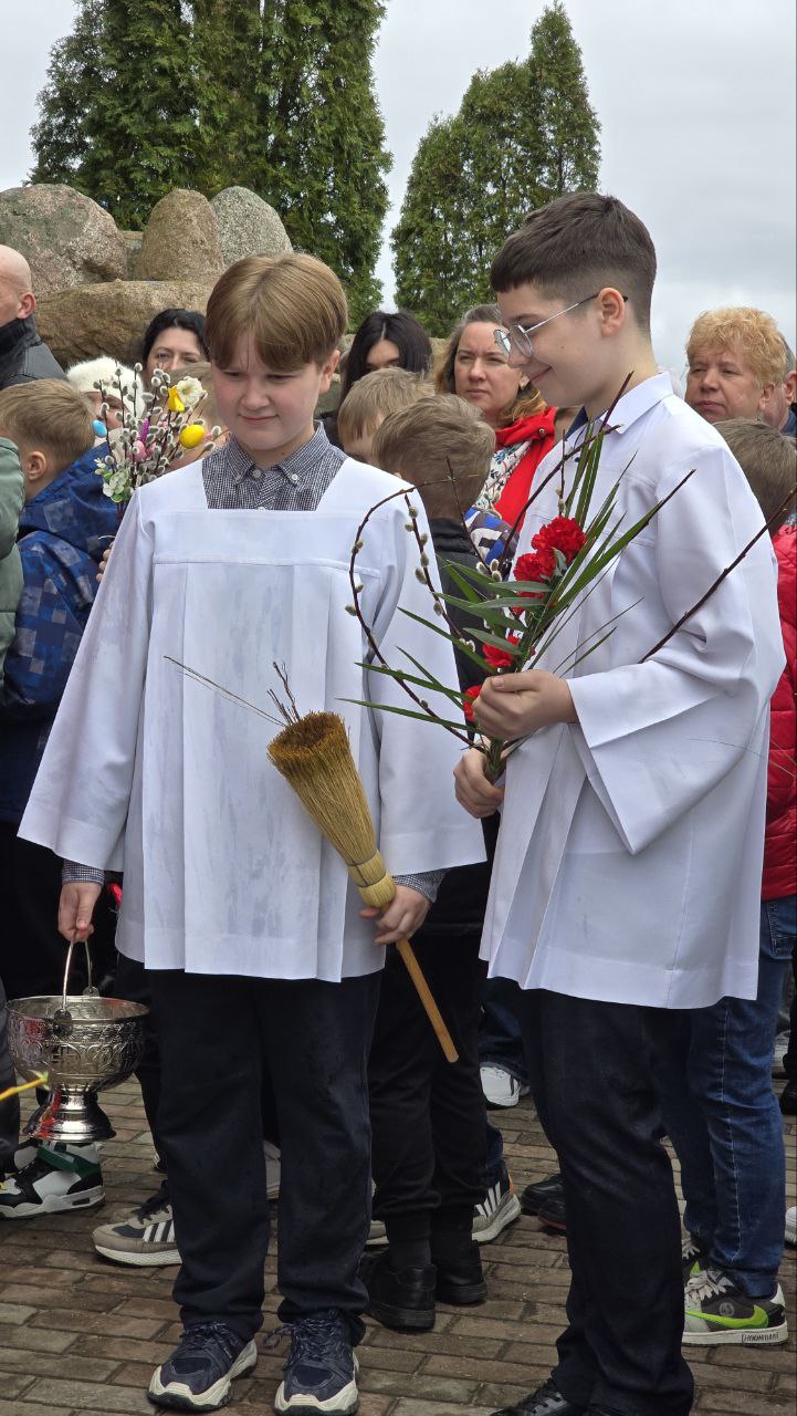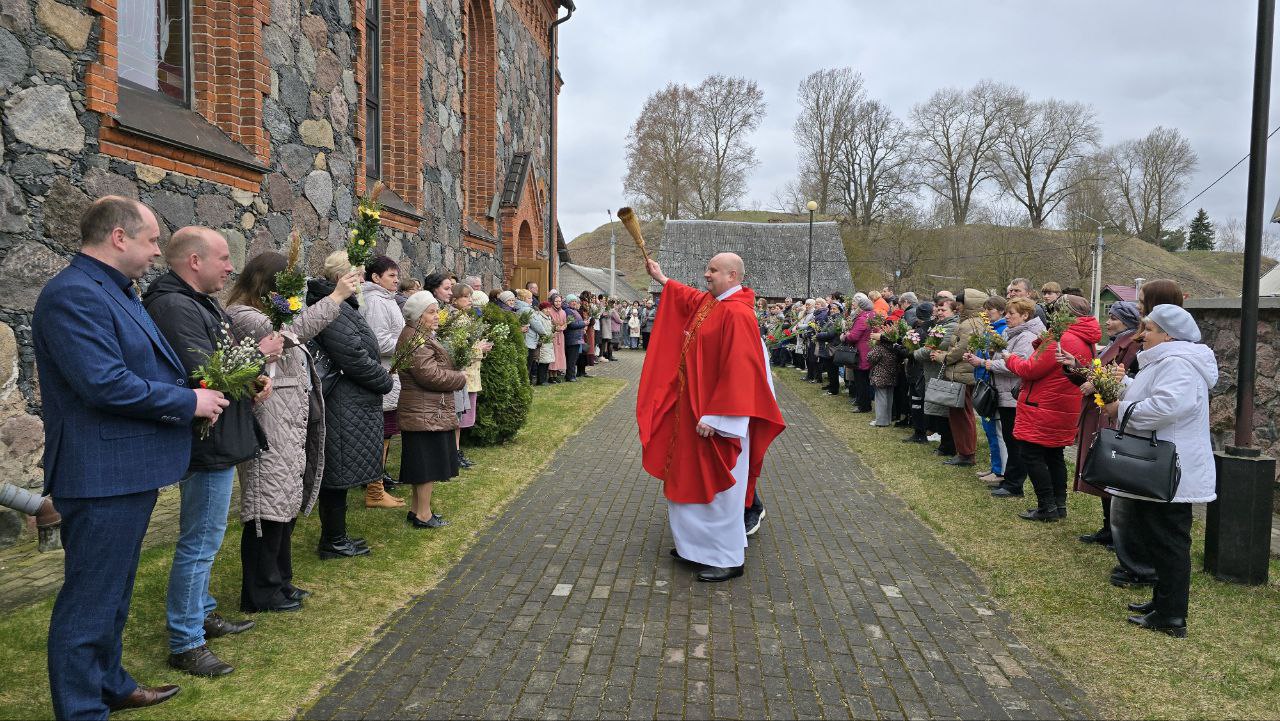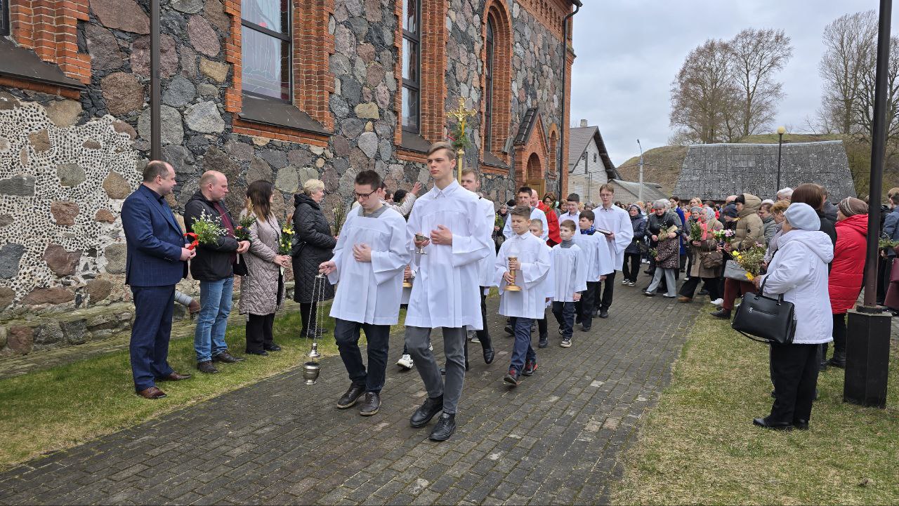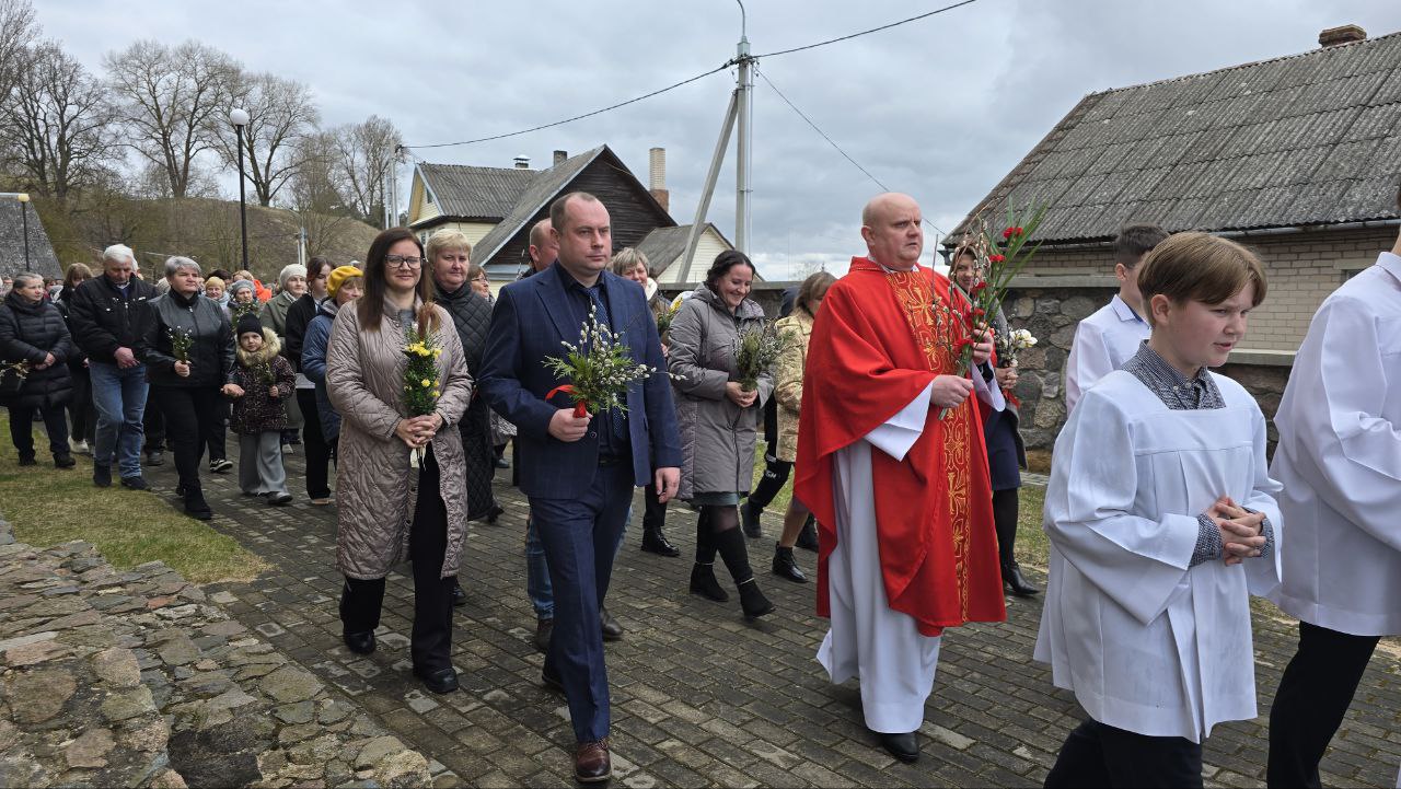 Па добрай традыцыі працэсія з вербамі распачала святую Імшу на 11 гадзін. Падчас святой Імшы пробашч парафіі кс. Станіслаў Мжыглуд заахвочваў прысутных знайсці час на гэтым тыдні, каб прысвяціць яго цішыні і малітве, аддаючы падзяку і хвалу Богу за збаўчую муку Яго Сына.