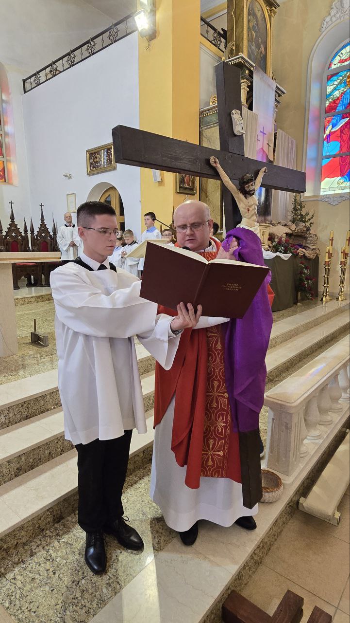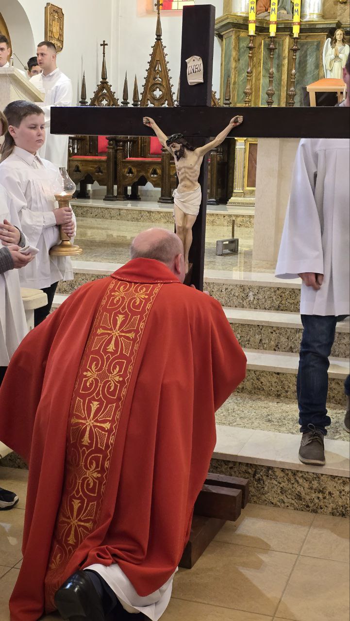 Вялікая пятніца — гэта час цішыні і ўспаміну збаўчай Мукі Езуса Хрыста. У гэты дзень у каталіцкіх святынях ва ўсім свеце не праводзіцца святая Імша. Замест яе — набажэнства Крыжовага шляху і адарацыя крыжа.