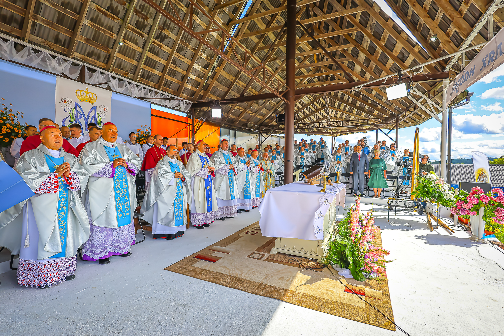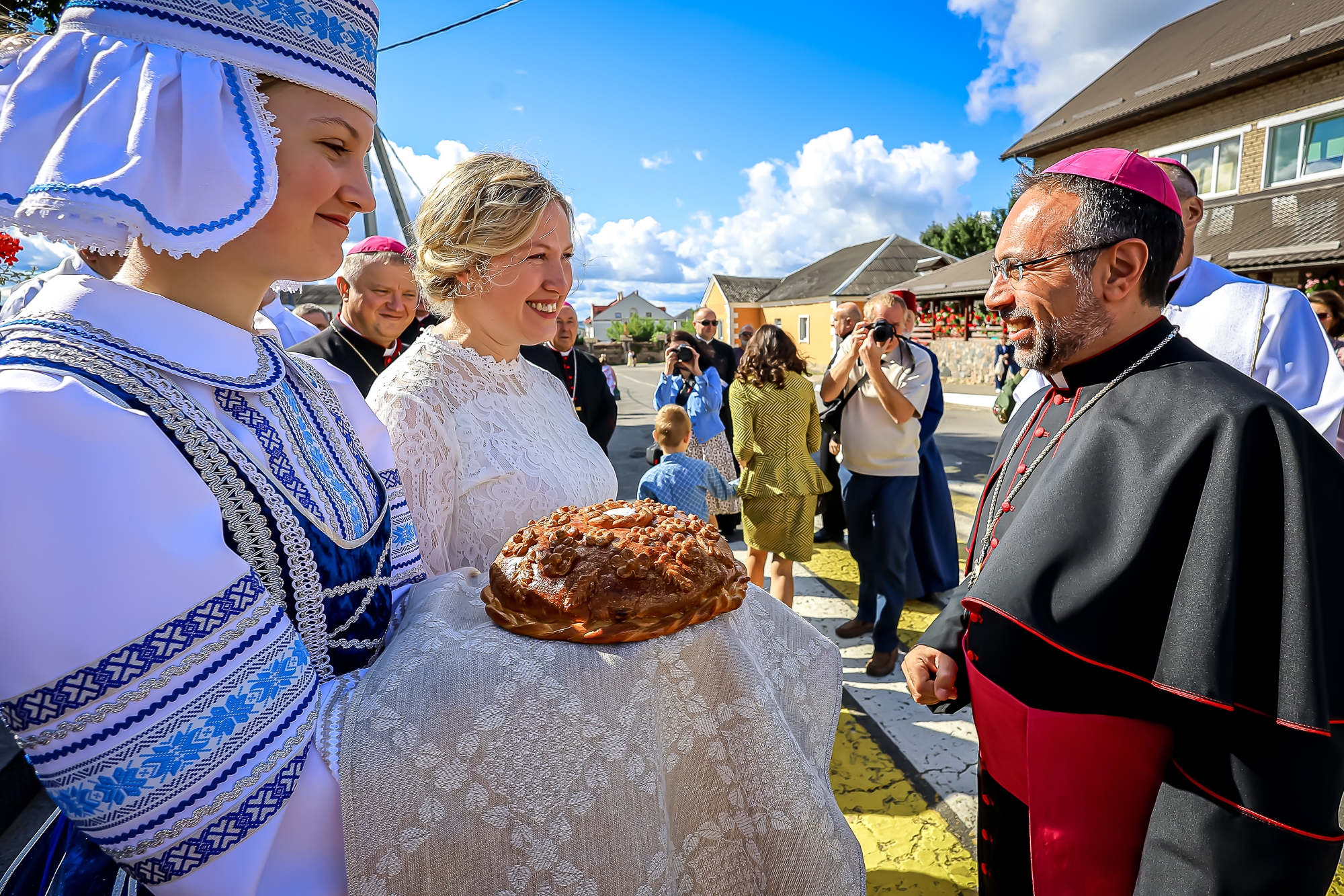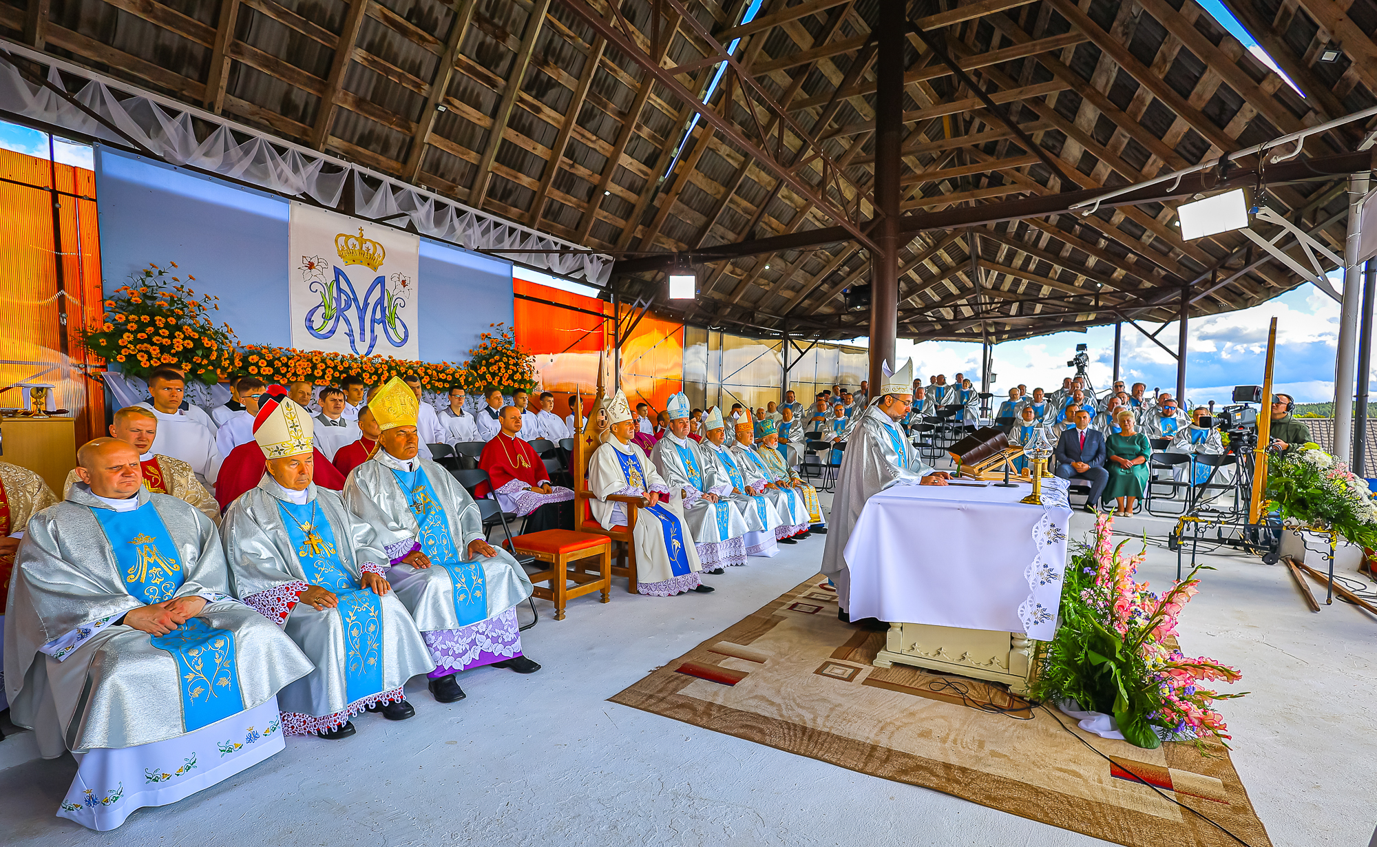 Важным госцем на Эўхарыстыі стаў Апостальскі нунцый арцыбіскуп Іньяцыё Чэффаліа, які прамовіў да прысутных гамілію, у якой падкрэсліў, што: “Гэты санктуарый на беразе возера Дрывяты – не проста месца тутэйшай пабожнасці, але і жывое сведчанне трывалай веры. […] У Марыі – зарніцы, якая прадвяшчае світанне, – мы знаходзім кіраўніцтва, абарону і прыклад пакоры, служэння і мужнасці. […] І менавіта гэты досвед веры, які так непахісна перажываў гэты народ, надае паўнату значэння слову, абвешчанаму сёння.”