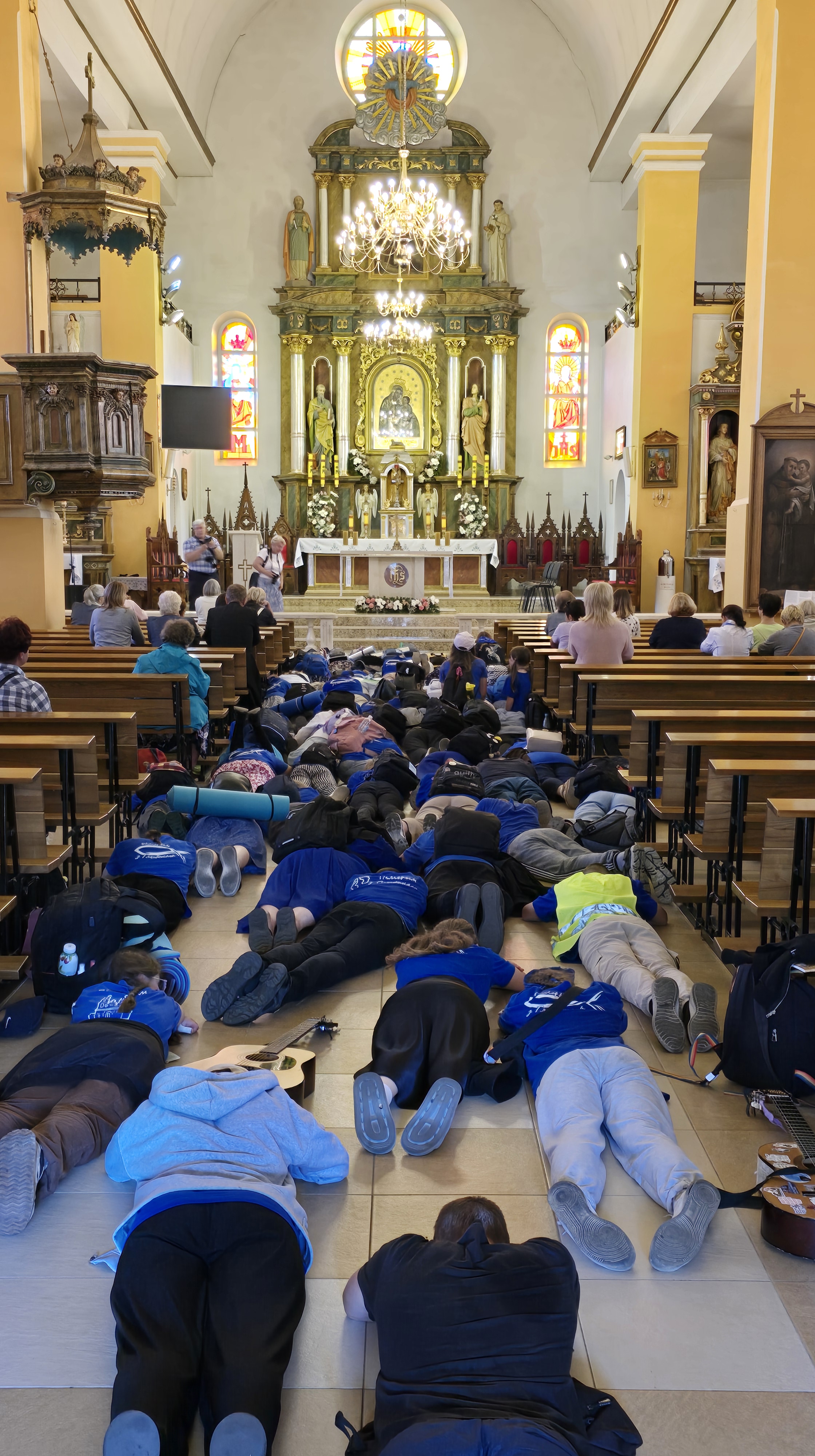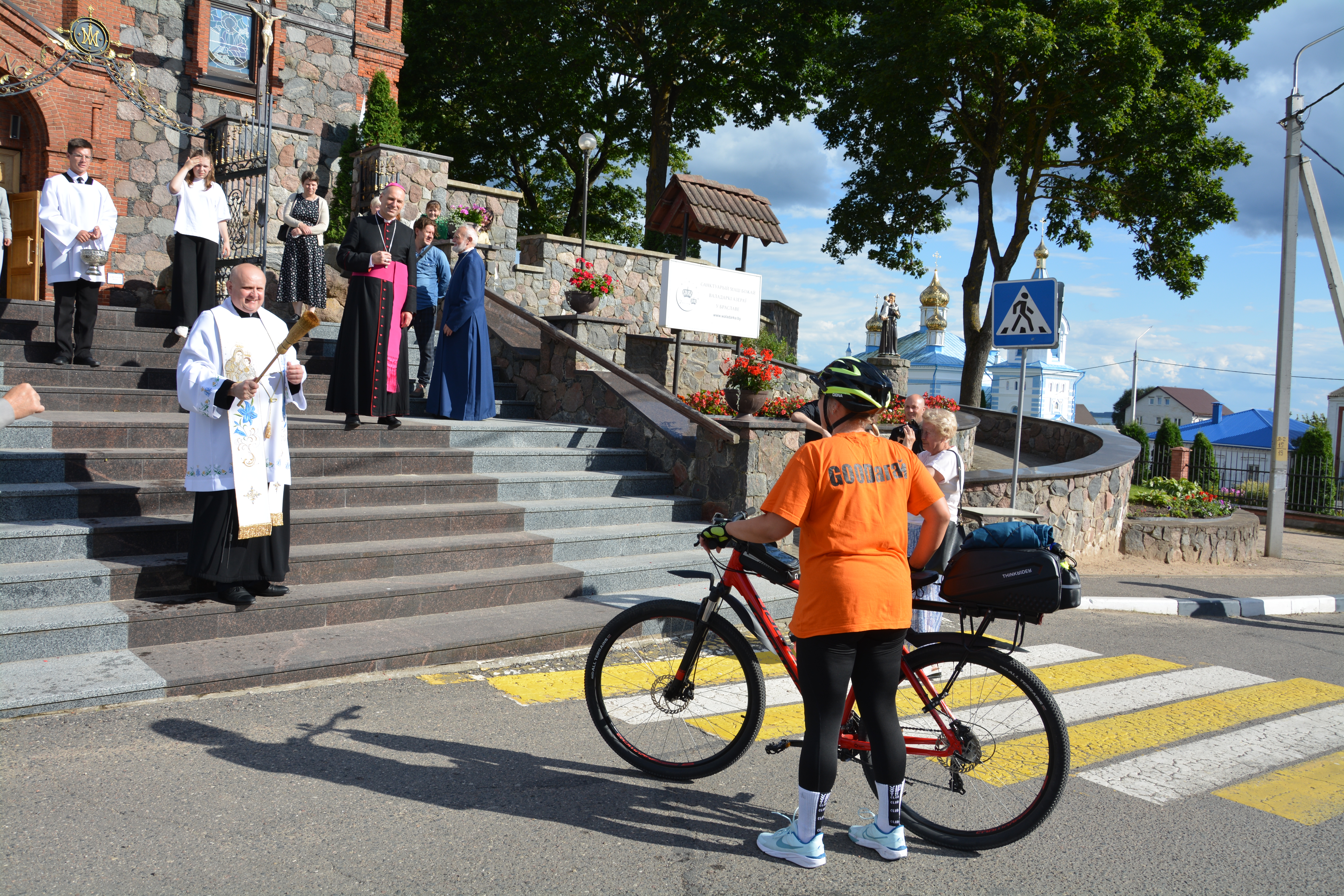 На прыступках базылікі пілігрымаў віталі біскуп Віцебскі Алег Буткевіч і пробашч парафіі кс. Станіслаў Мжыглуд SDS. У гэтым годзе пешыя пілігрымы прыйшлі з Глыбокага і Удзела. На роварах прыбылі вернікі з Мёраў і Гудагая.