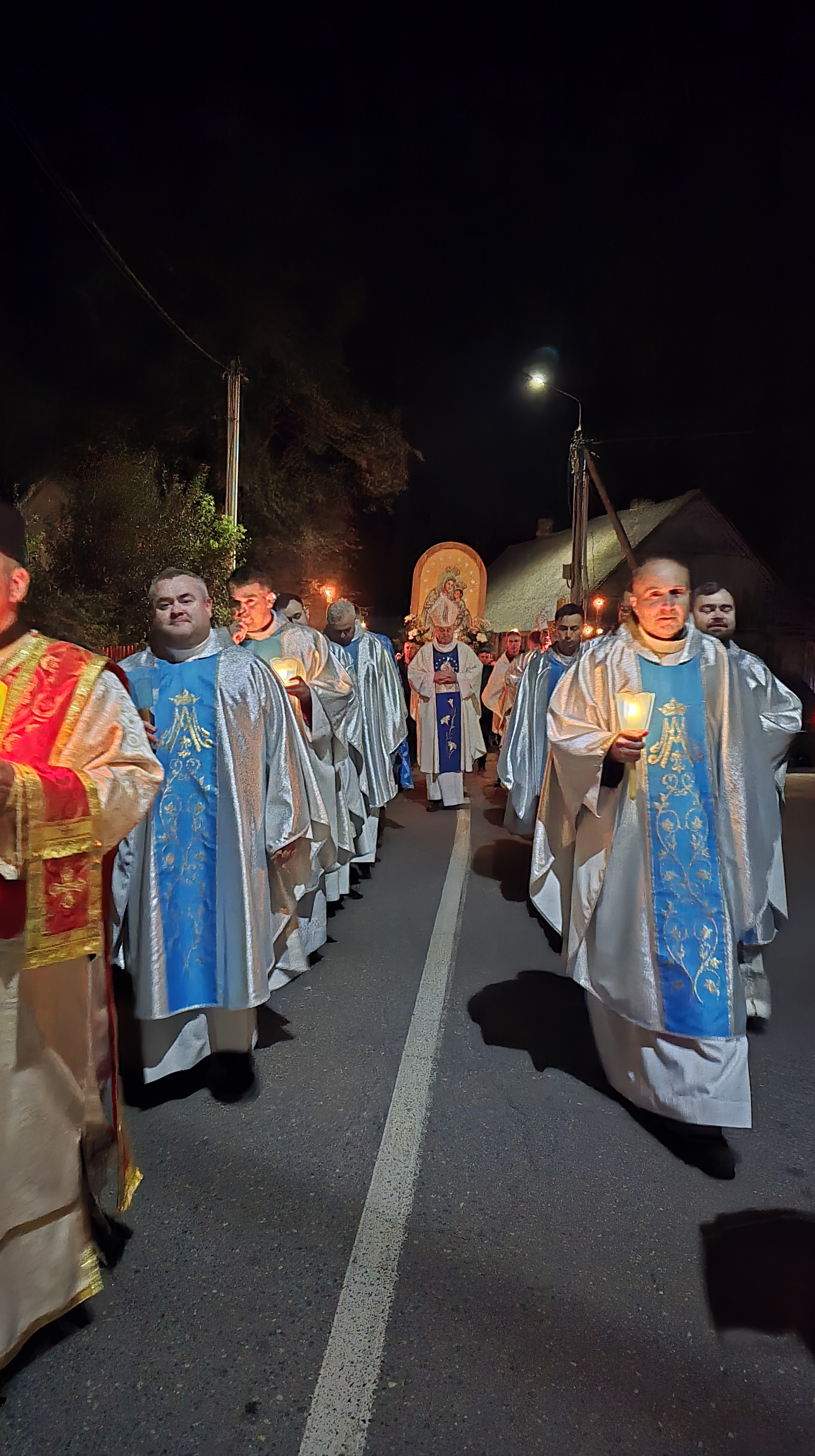 Традыцыйная працэсія са свечкамі і копіяй абраза Маці Божай папярэднічала святой Імшы апоўначы. У ружанцовай малітве вернікі парафіі і пілігрымы даручалі Богу свае турботы і маліліся аб Божых ласках праз заступніцтва Найсвяцейшай Панны.