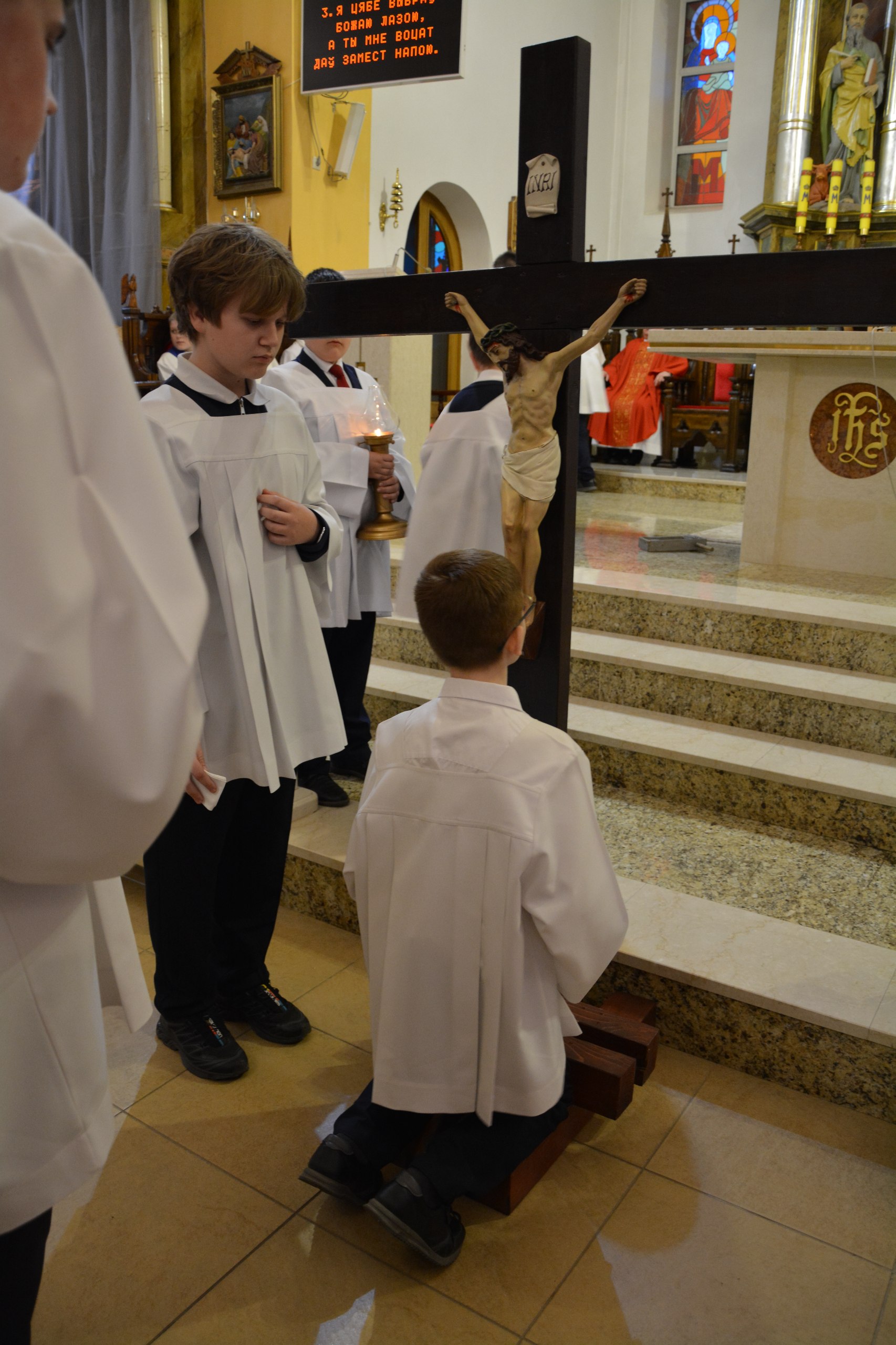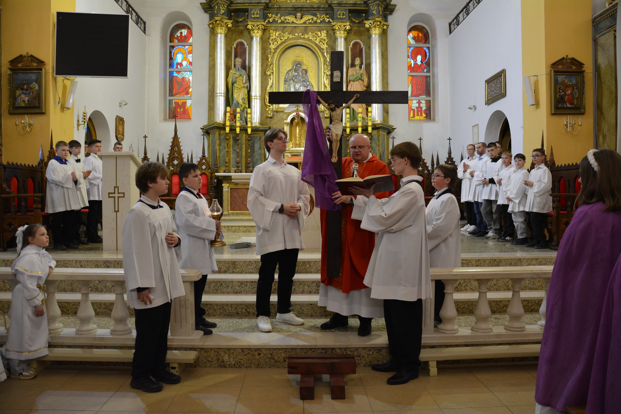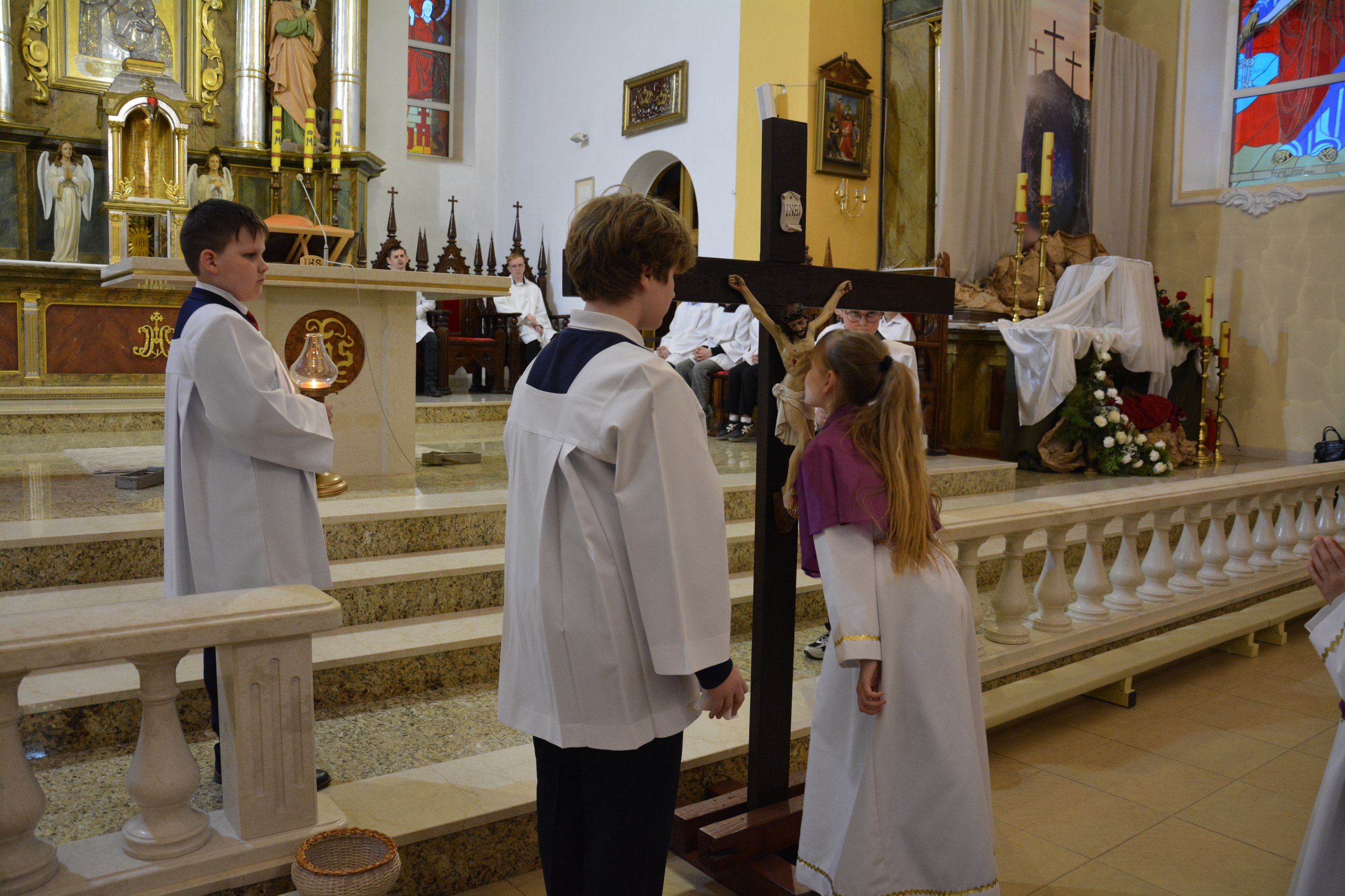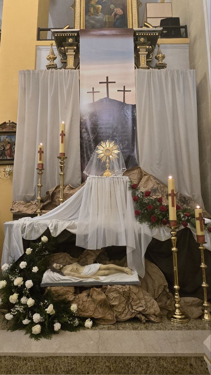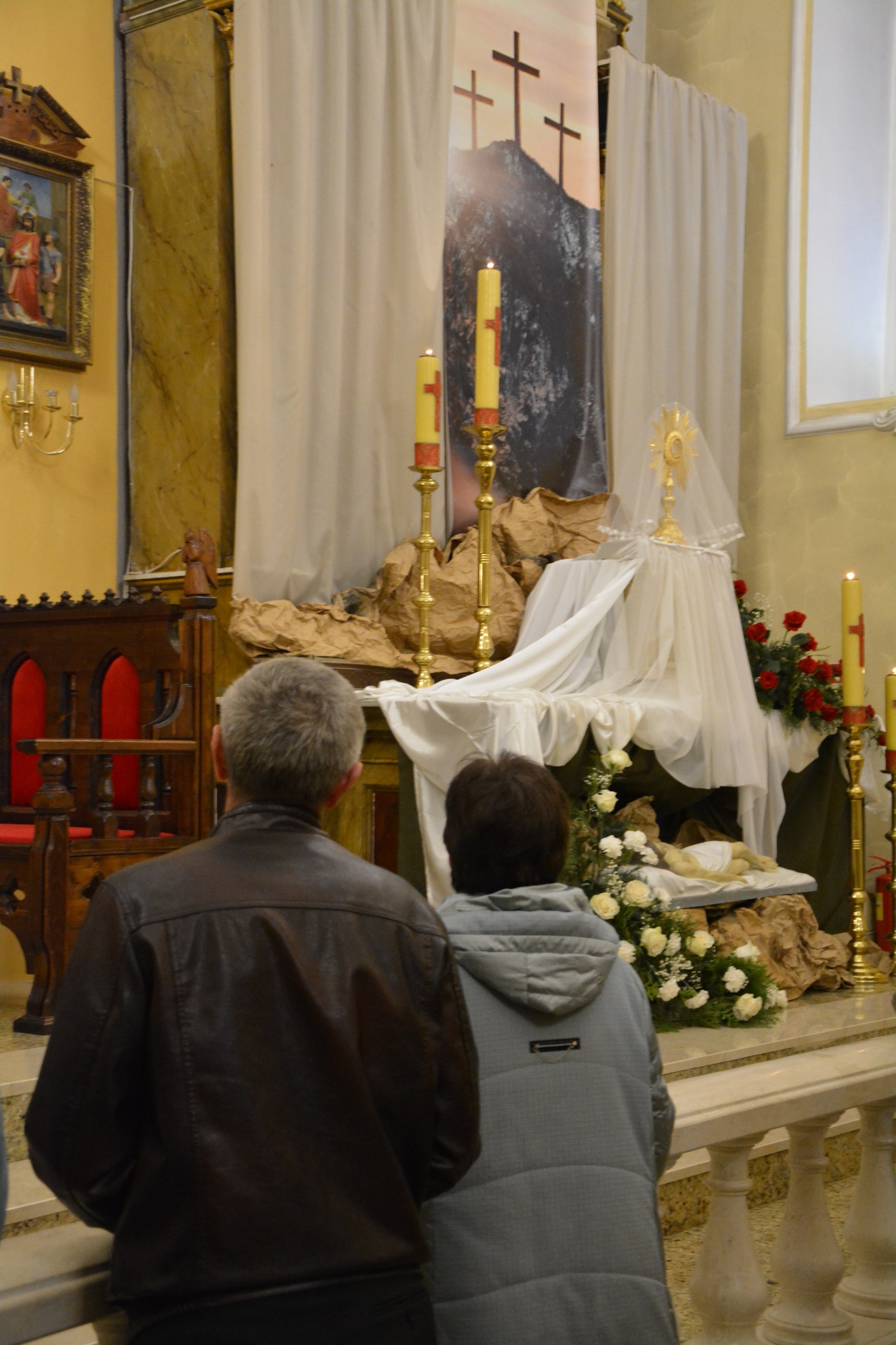 Нутро святыні нібы знаходзіцца ў жалобе. Аголены алтар, пусты табернакль з адчыненымі дзверцамі, не гарыць лямпада. Гэта сімвалізуе адсутнасць Эўхарыстычнага Хрыста да пачатку Велікоднай Вігіліі. Таму і для вернікаў гэта дзень сціслага посту і абстыненцыі.